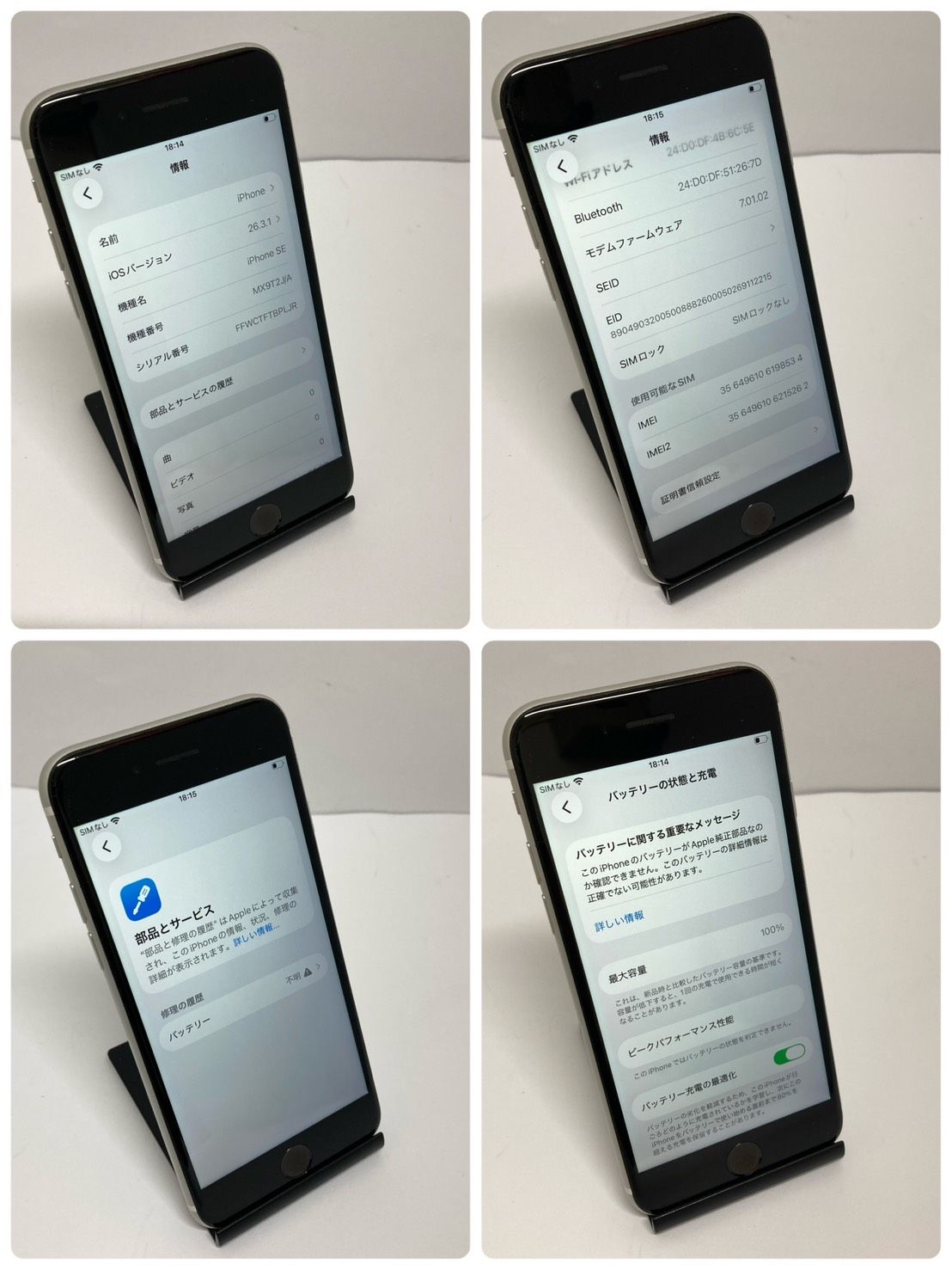 今日発送 ジャンク品☆iPhoneSE2 64GB 電池100% ホワイト ◆全国発送◆8534