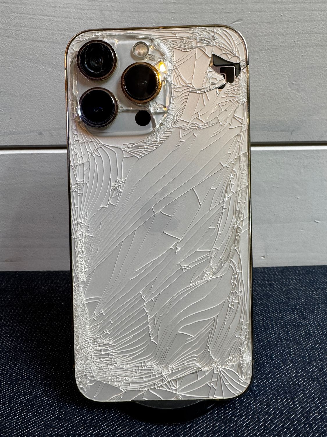 ・外装: 前面、背面ともにガラス割れが激しい状態です(バキバキです)。カメラレンズも割れています。
