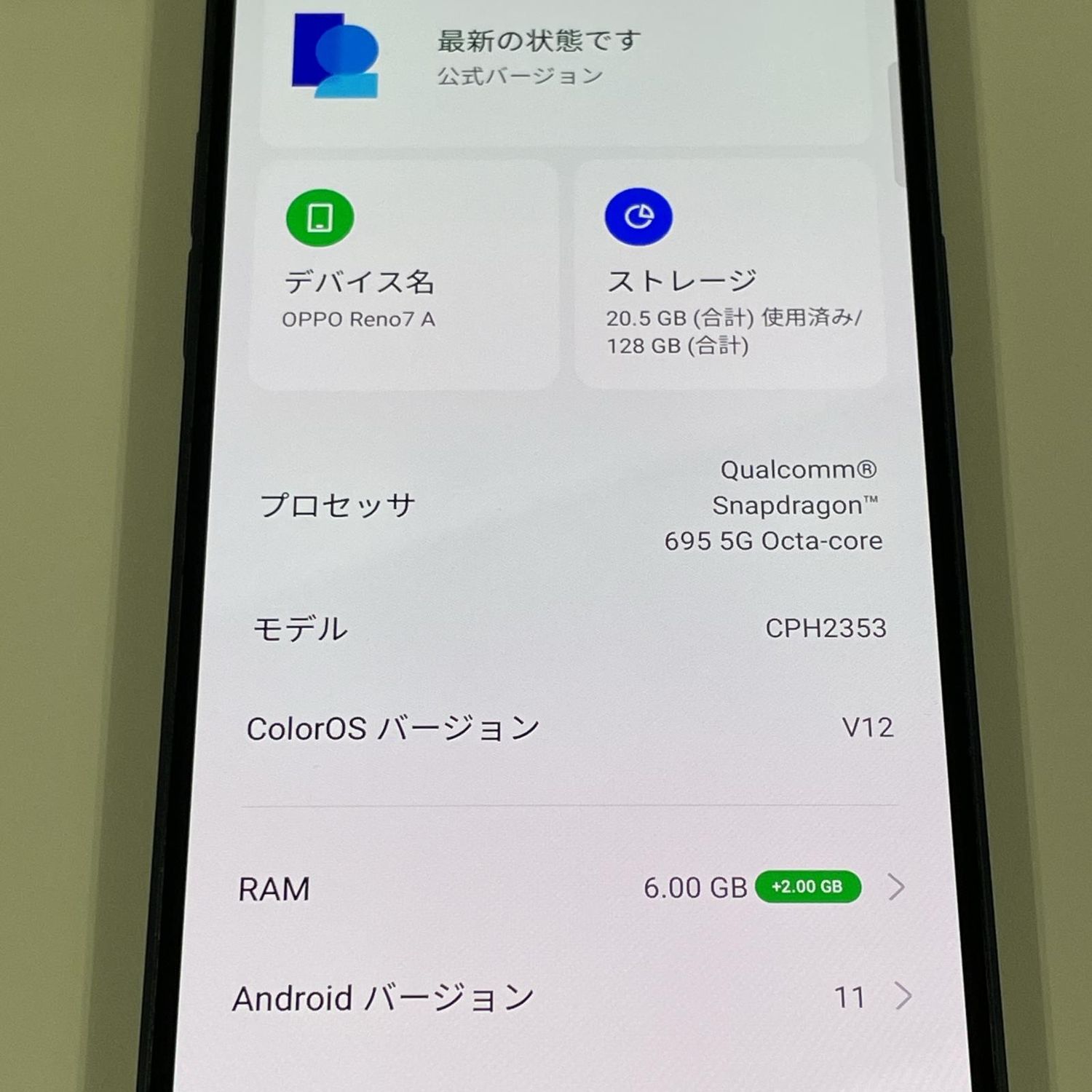 | 機種名 | OPPO Reno7 A |