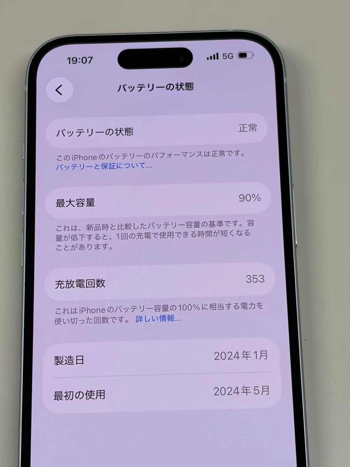 バッテリー最大容量表示:90%