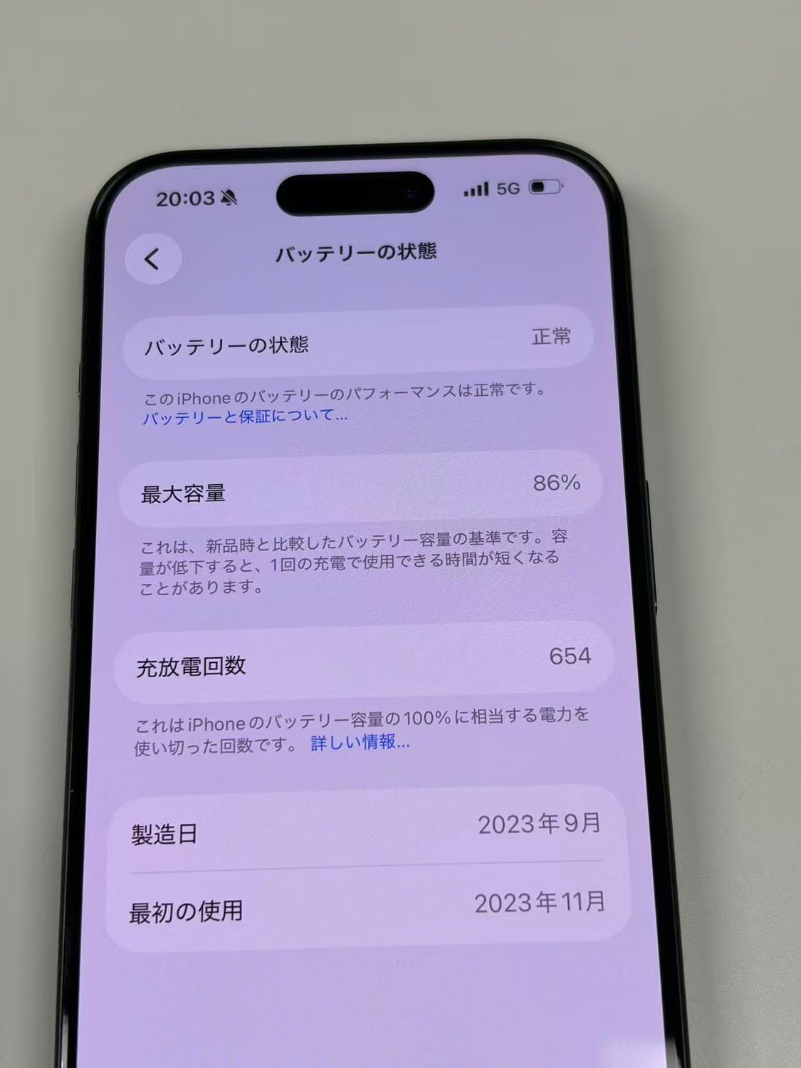 バッテリー最大容量表示:86%