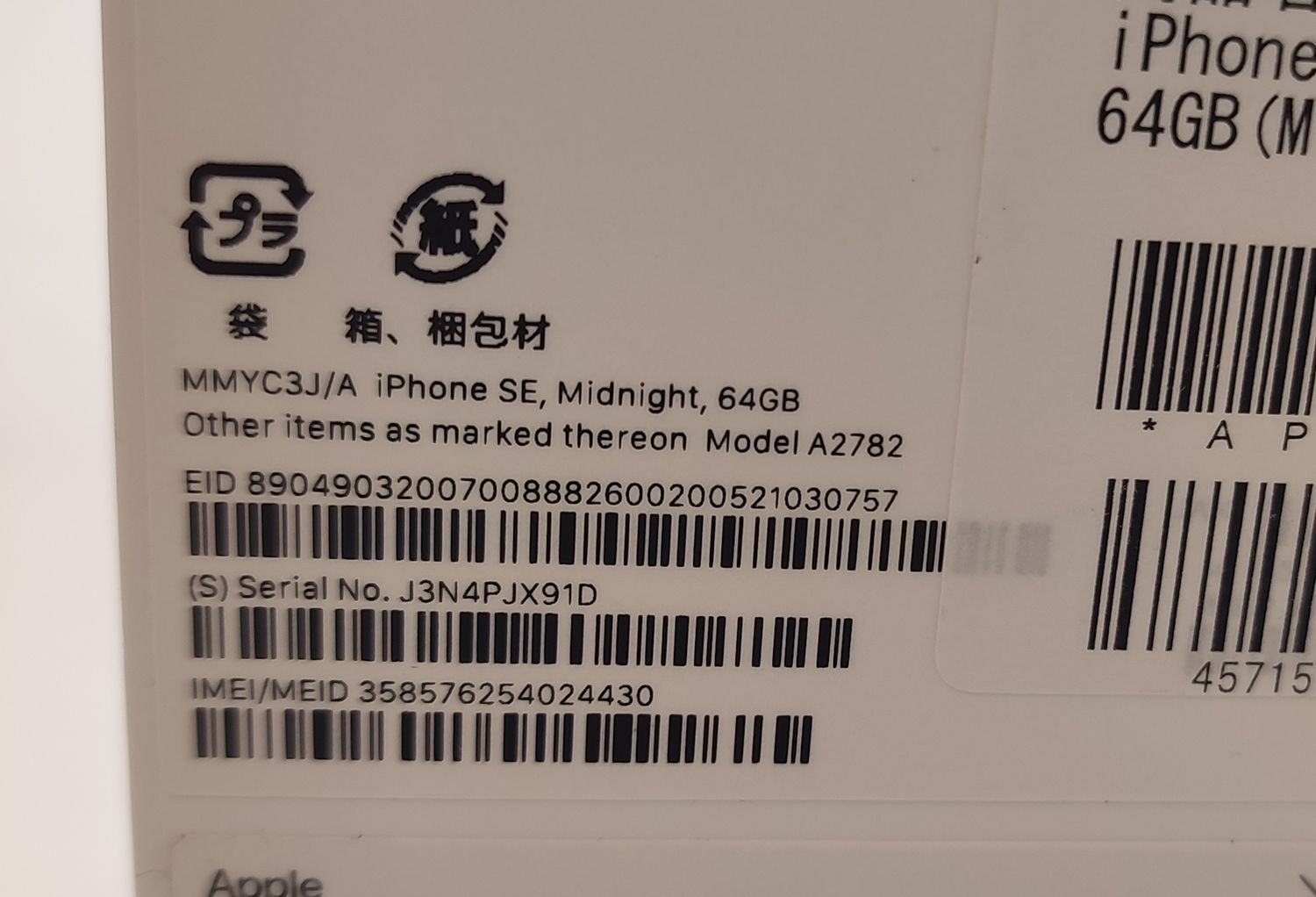 【新品未使用】 iPhone SE3 64GB ミッドナイト SIMフリー ◯判定