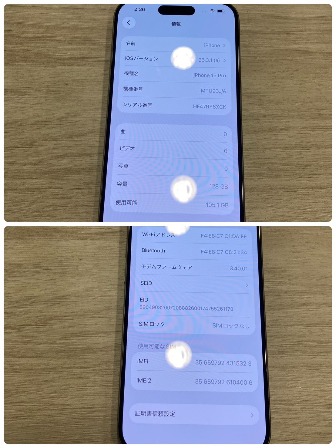| 機種名 | iPhone15 Pro |