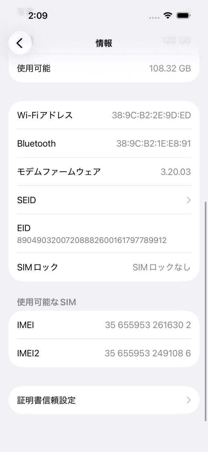 | IMEI番号 | 356559532616302 |