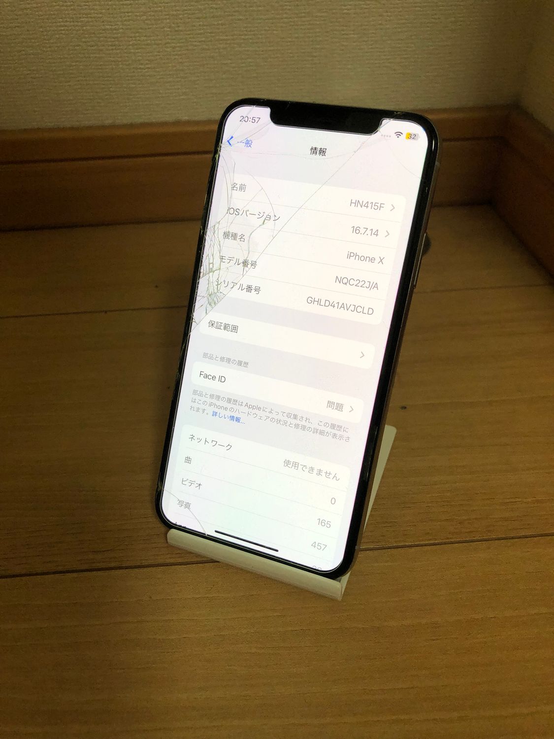 【傷、不具合の場所/状態】画面割れで、なおかつ上の方が反応しません、また、Face IDも壊れています、アクティベーションロックとSIMロックを解除して送ります