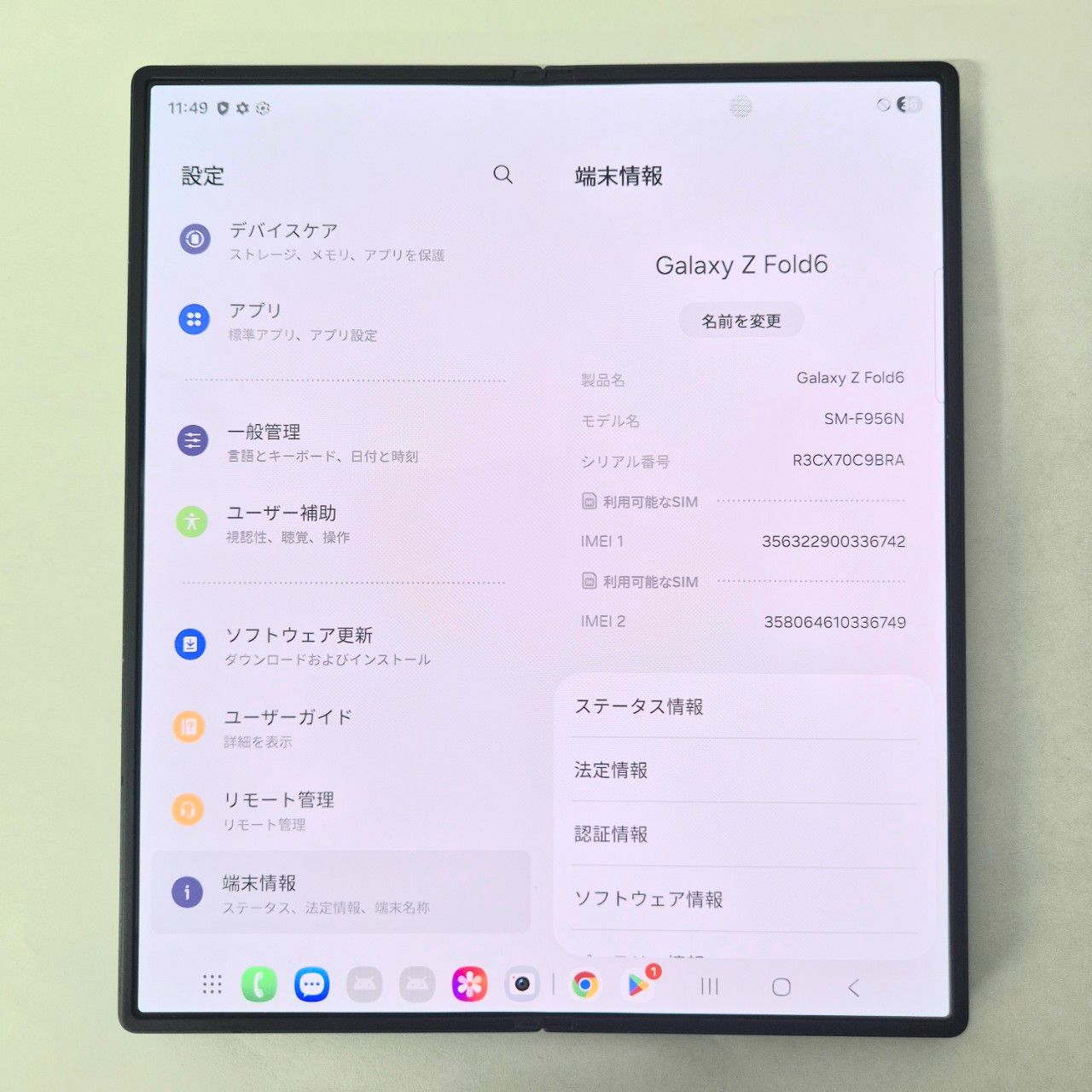 | 機種名 | Galaxy Z Fold6 |