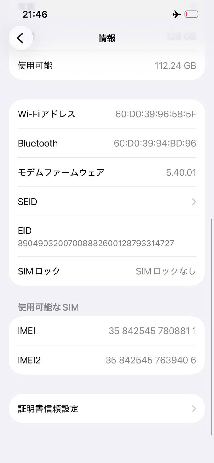 | IMEI番号 | 358425457808811 |