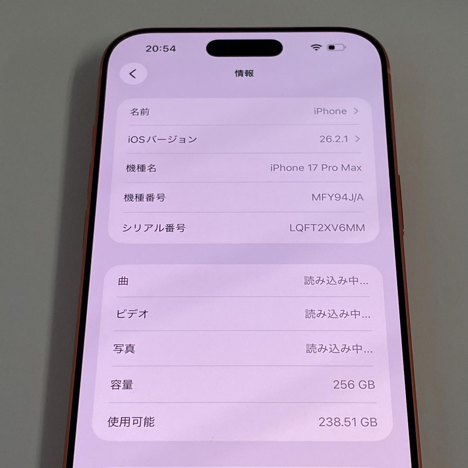 | 機種名 | iPhone17 Pro Max |