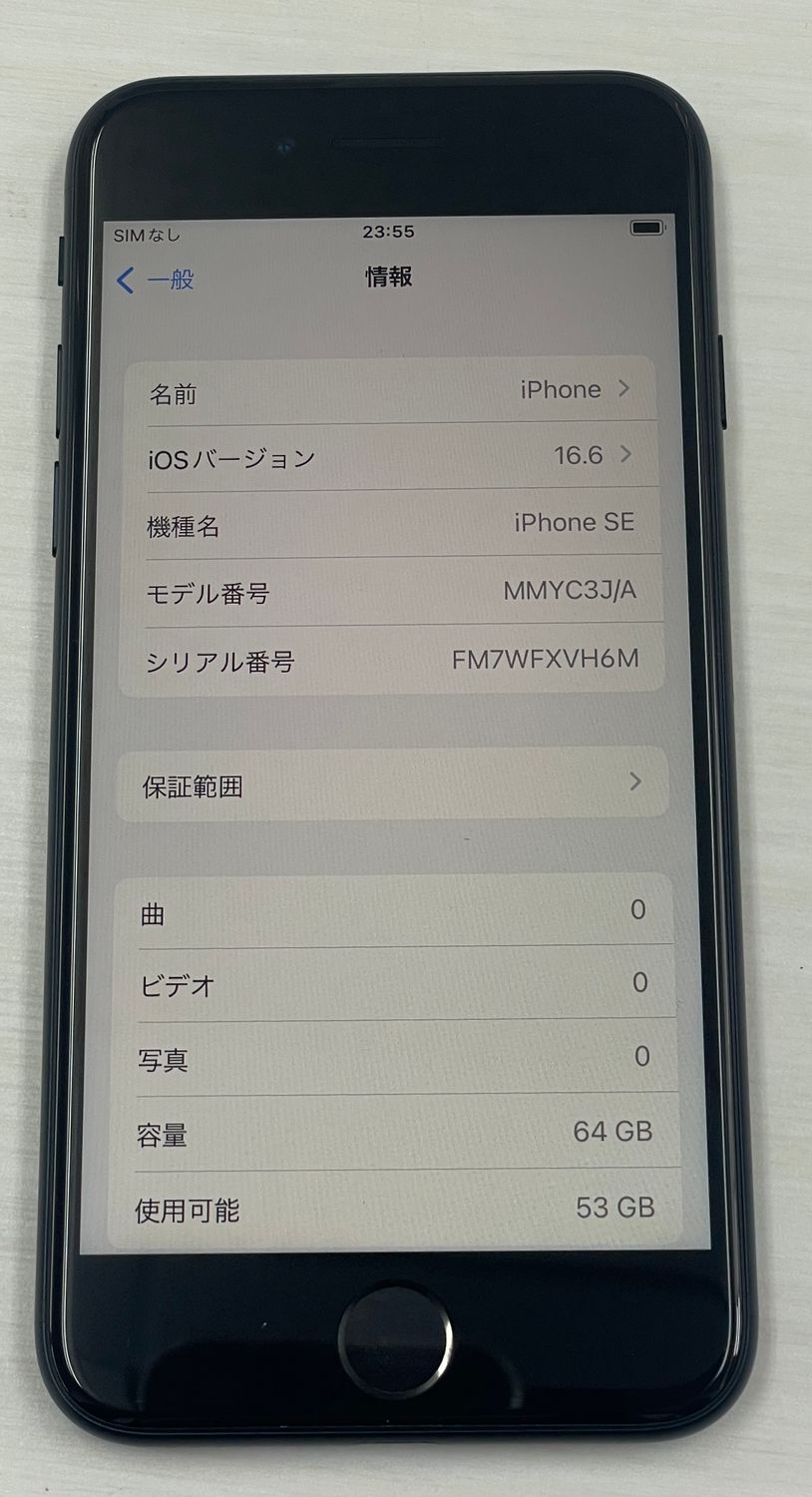 バッテリー100% 超美品 iPhone SE(第3世代) 64gb ミッドナイト