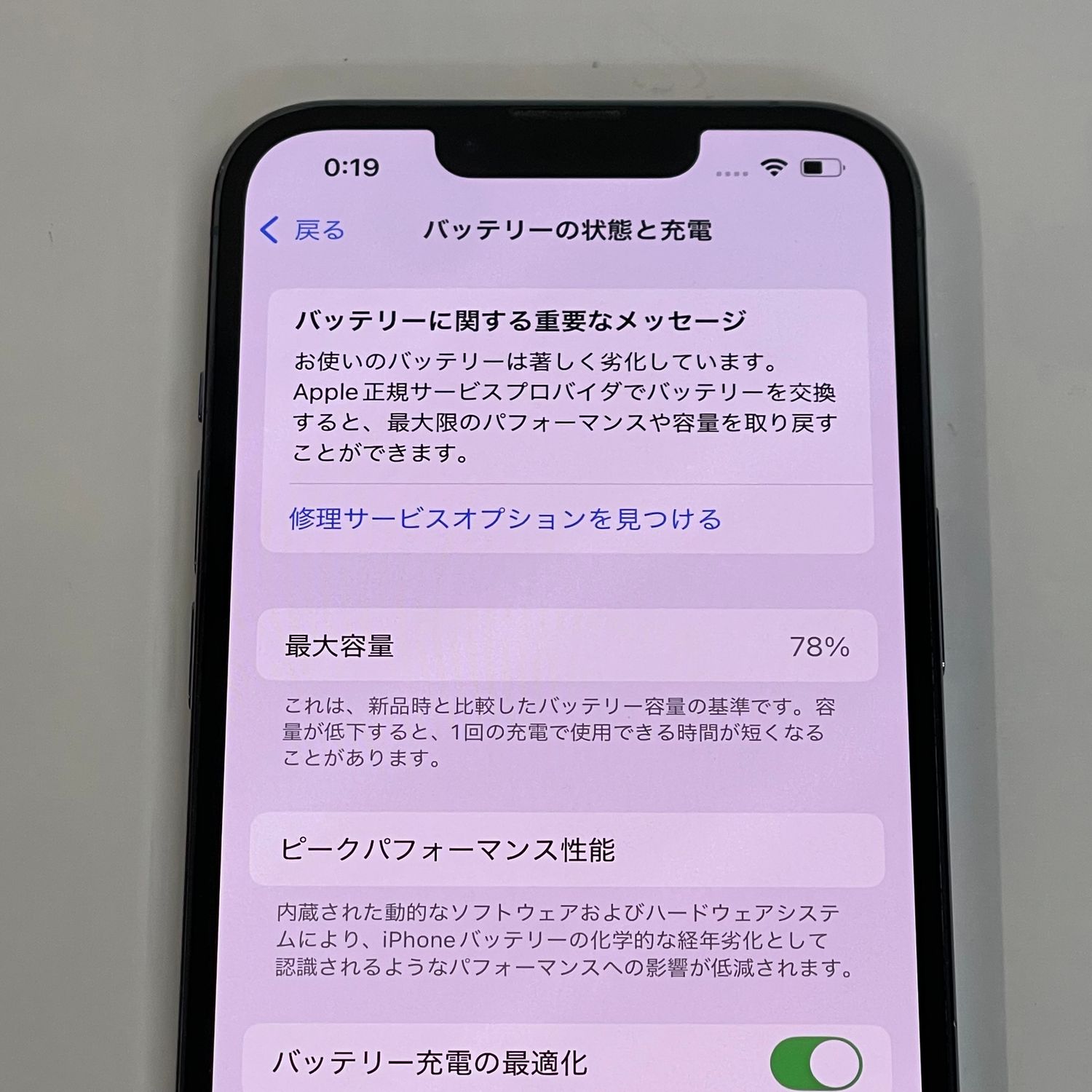検品時のバッテリー最大容量は78%、mysoftbankにSIMロック解除済みです。