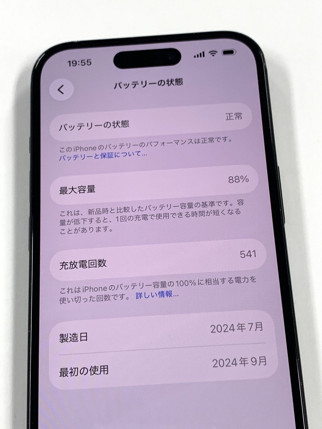 バッテリー最大容量表示:88%