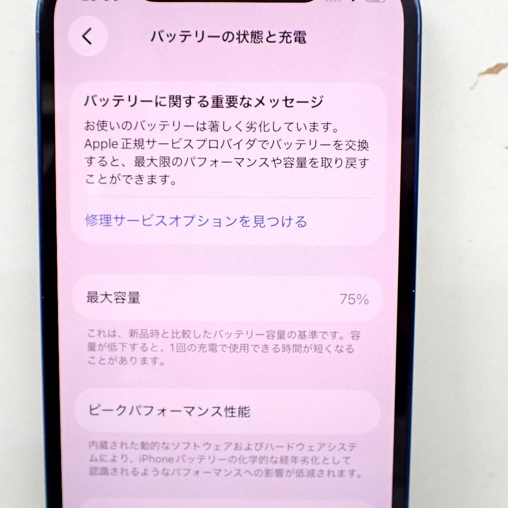 ●バッテリー最大容量:75%(サービス表示)