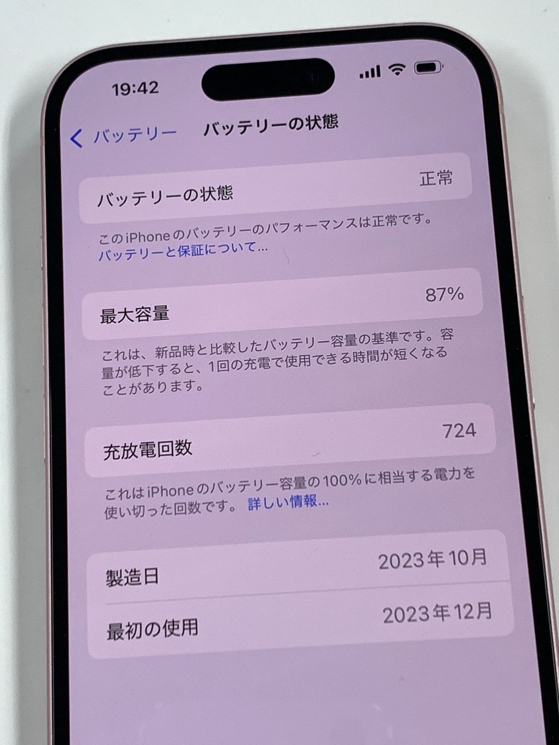 バッテリー最大容量表示:87%
