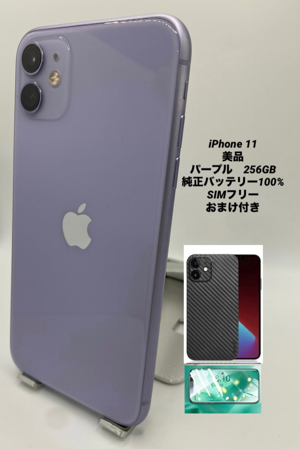 明日発送 060★美品★iPhone 11 256GB パープル/純正バッテリー100%