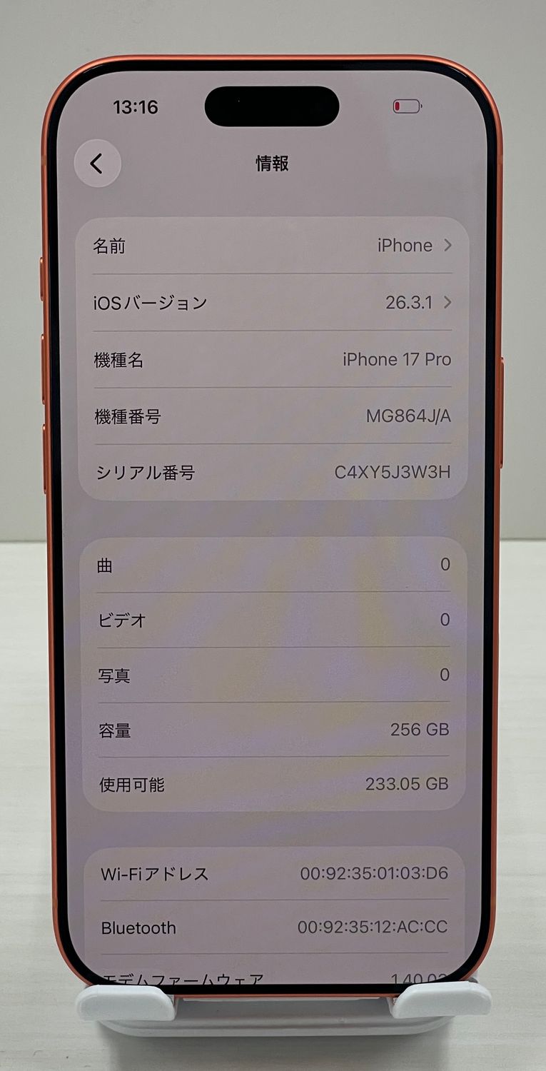 | 機種名 | iPhone17 Pro |