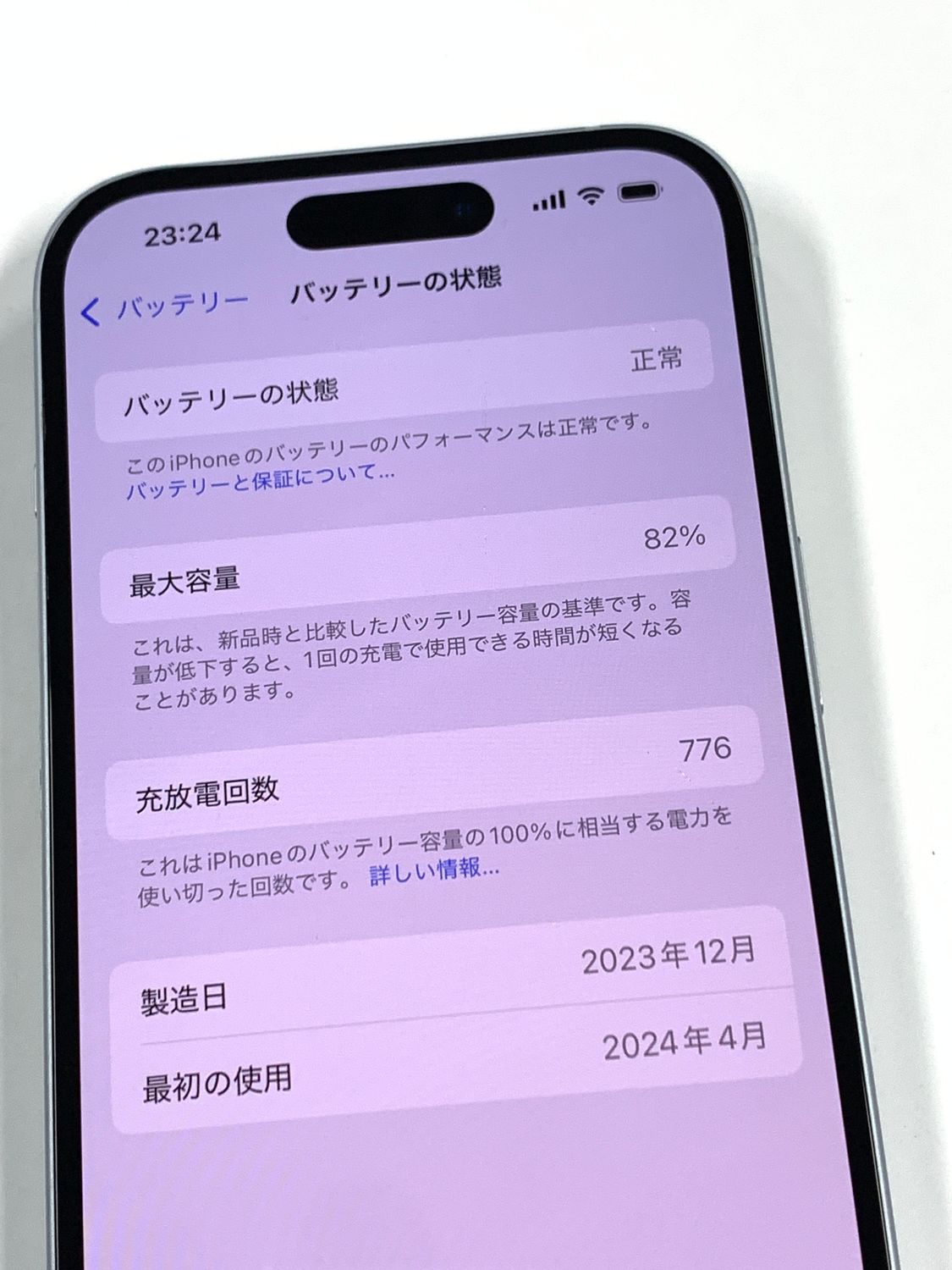 バッテリー最大容量表示:82%