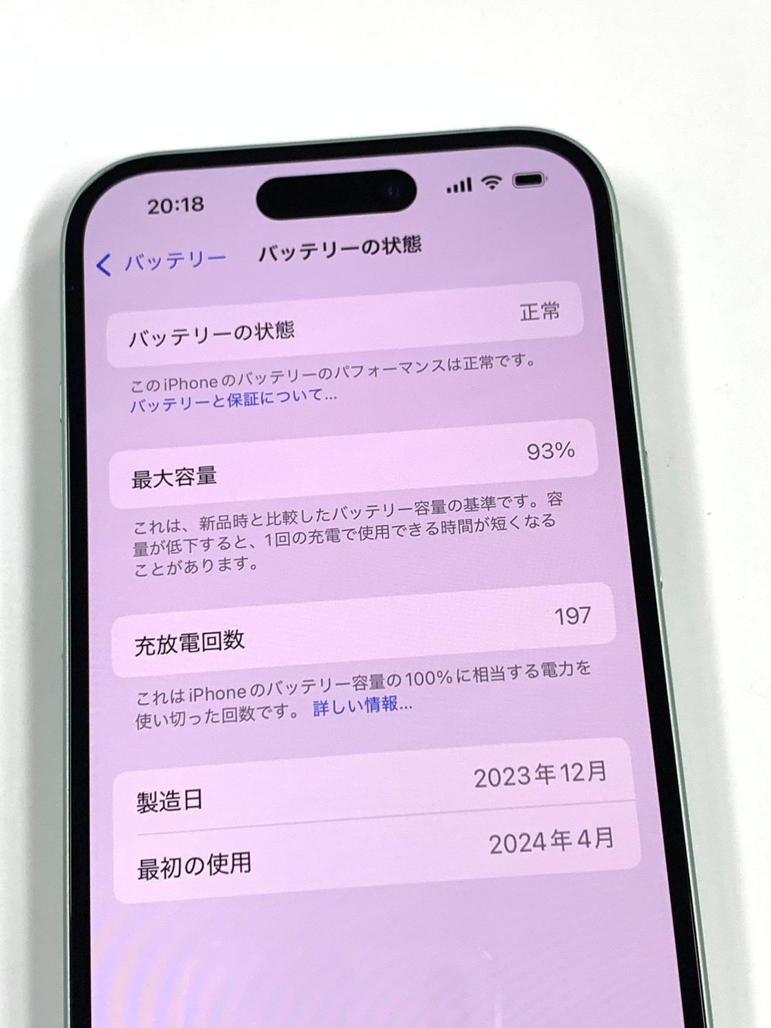 バッテリー最大容量表示:94%