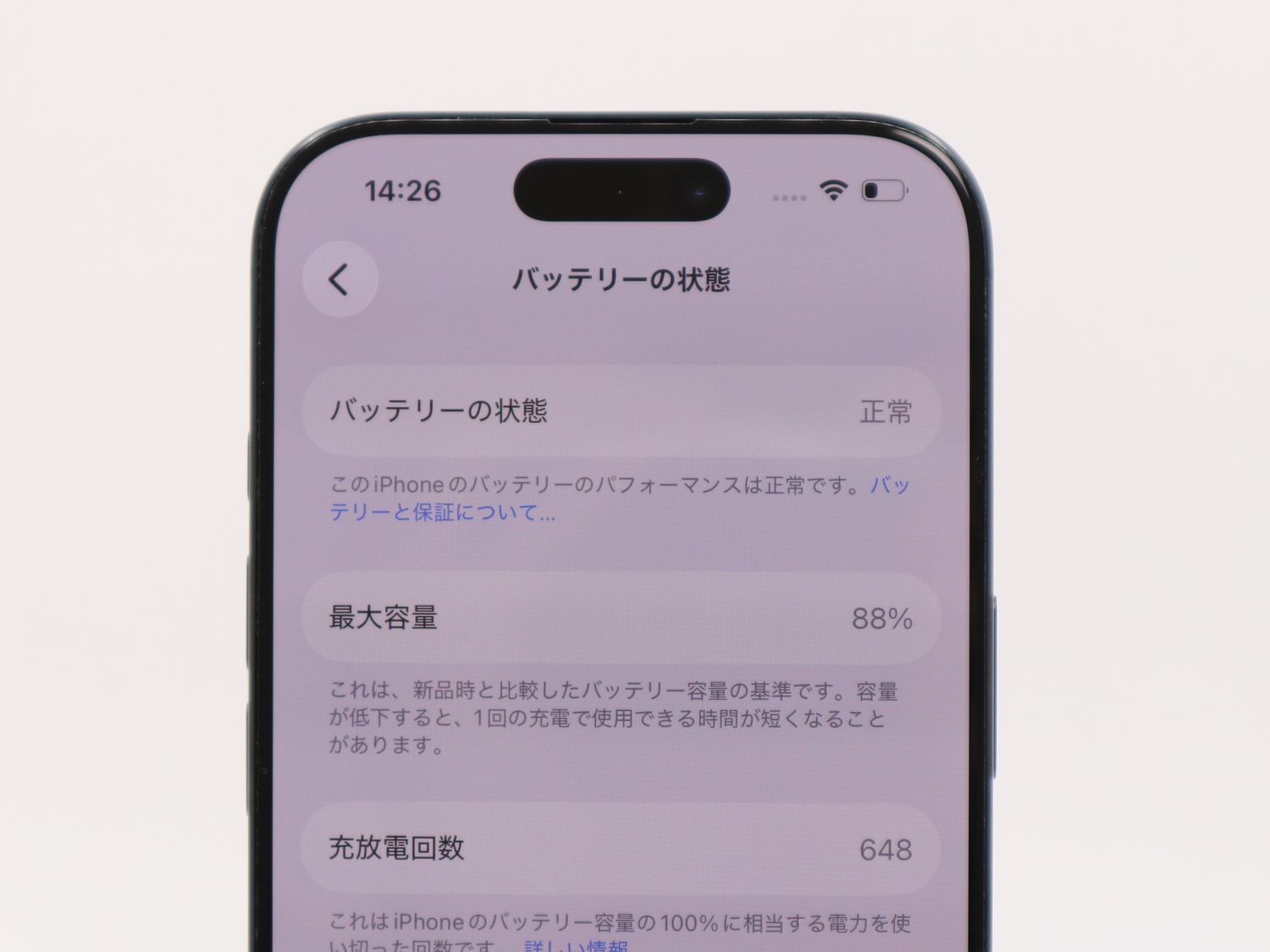 ■バッテリー状態:最大容量100%中88%