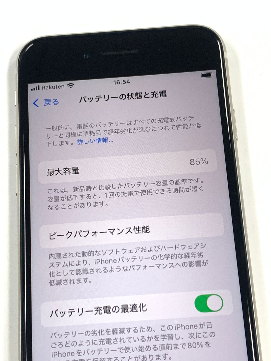 バッテリー最大容量表示:85%