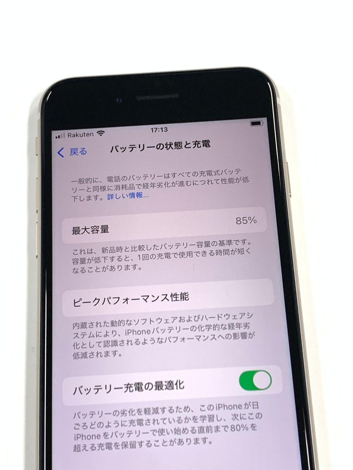 バッテリー最大容量表示:85%