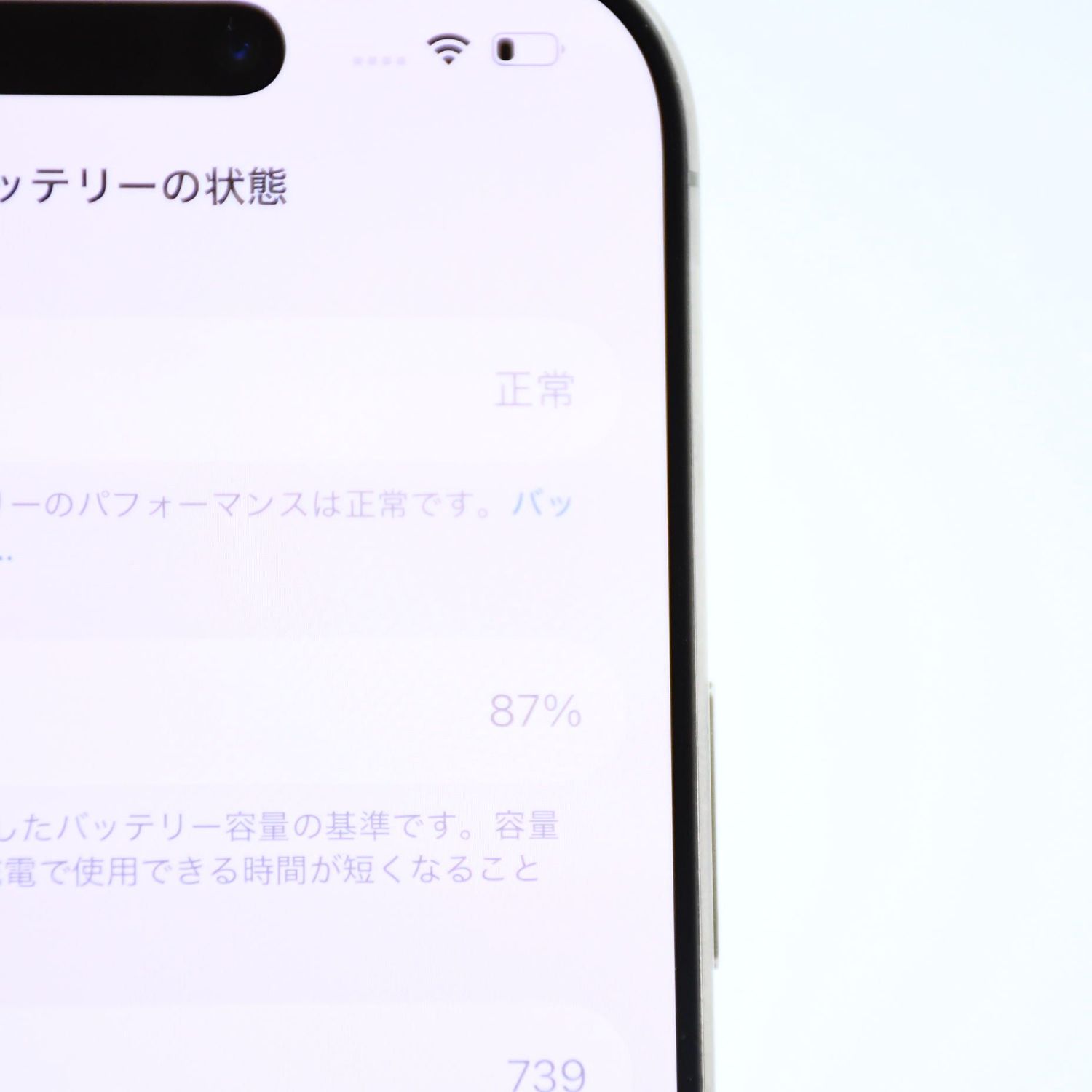 バッテリー最大容量 :100%中87%