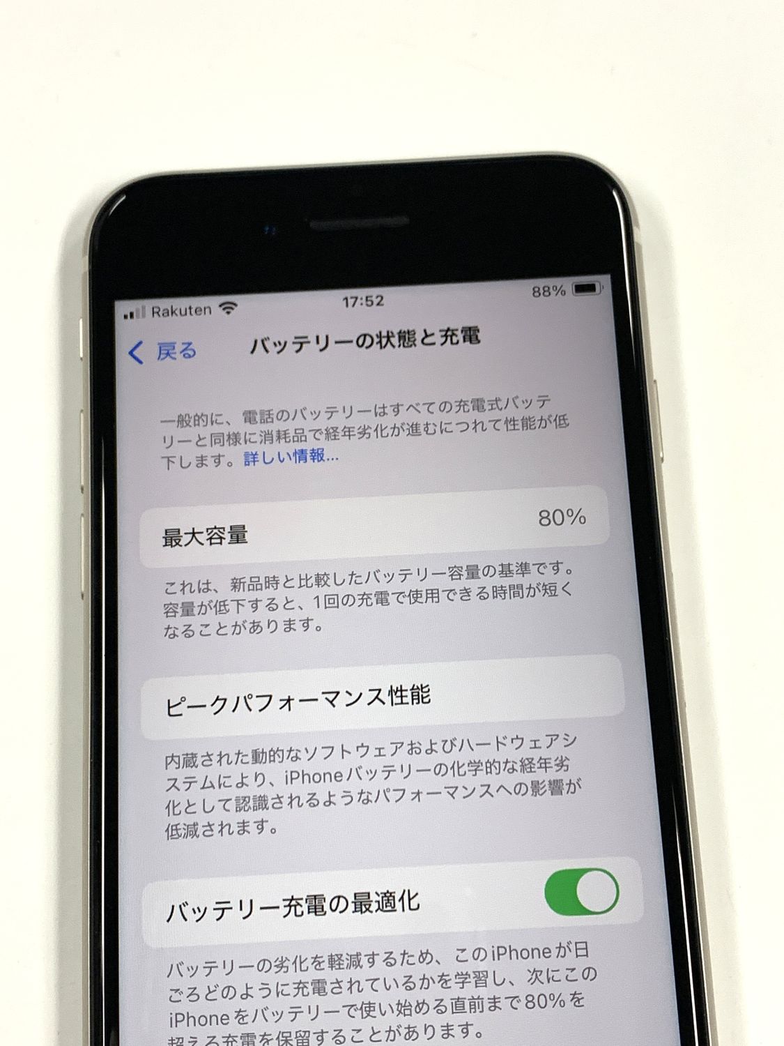 バッテリー最大容量表示:80%