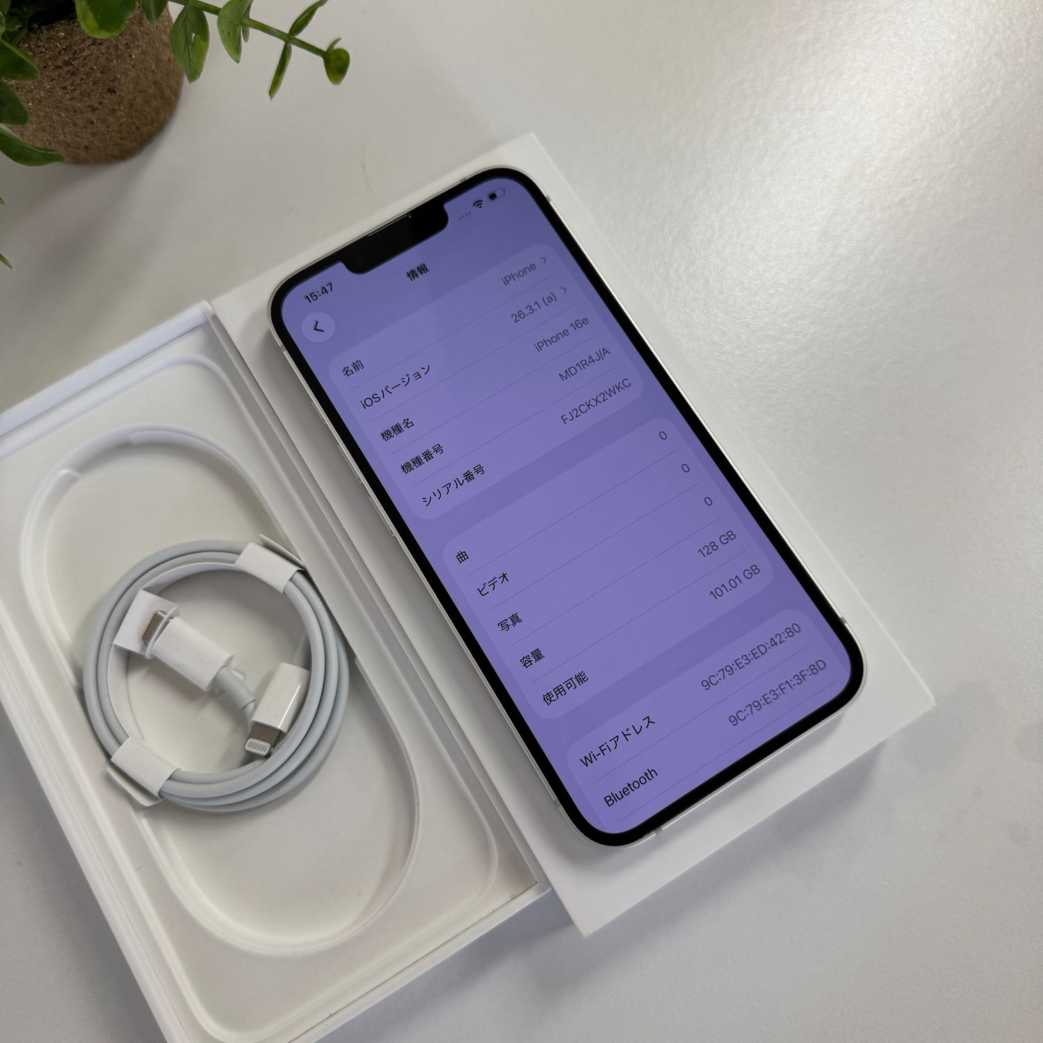 明日発送 バッテリー100% iPhone 16e 128GB ホワイト 国内版SIMフリー送料無料