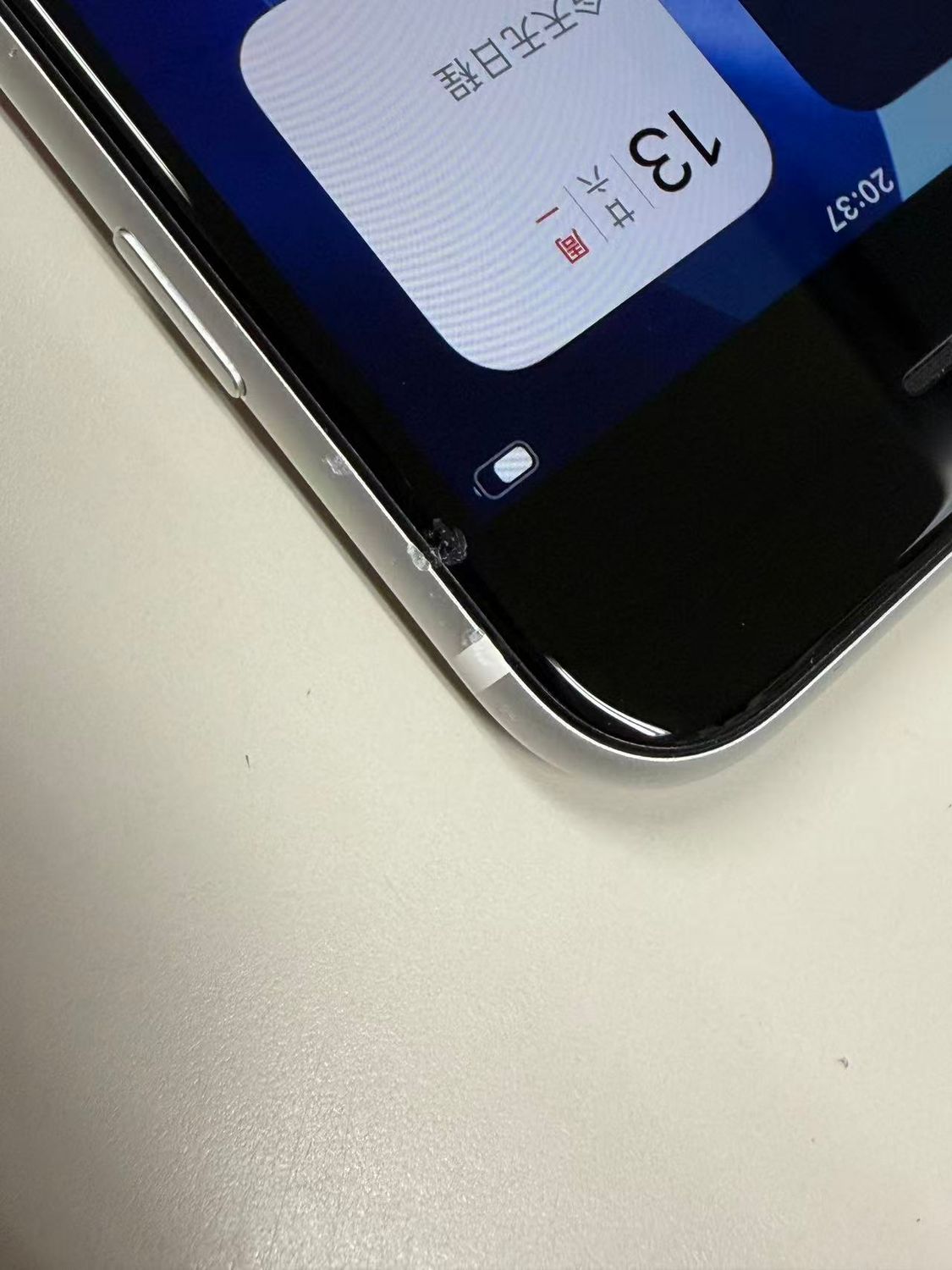 液晶パネルの右上縁打痕ひびがあります。
