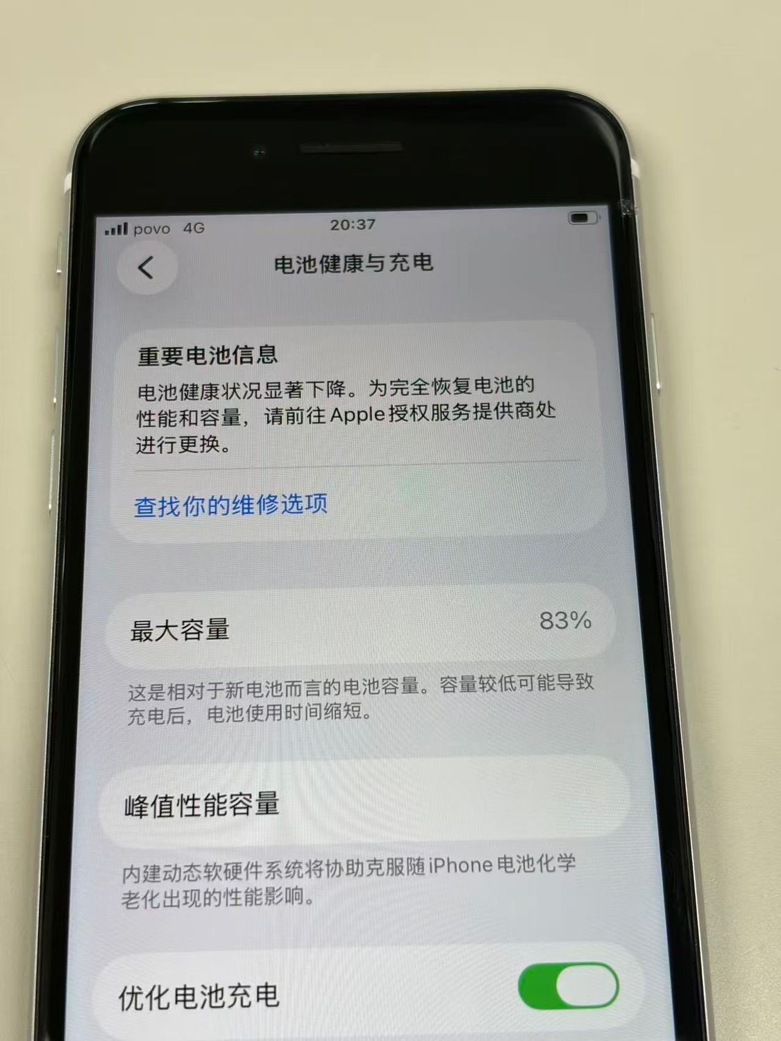 バッテリー最大容量表示:83%