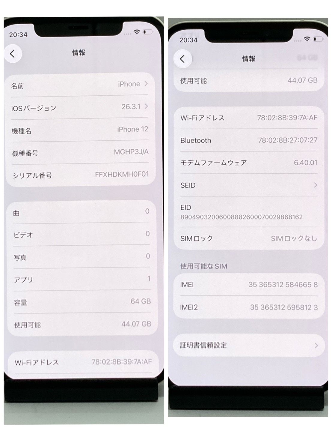 | 機種名 | iPhone12 |