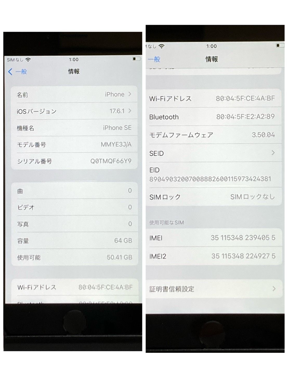 | IMEI番号 | 351153482394055 |