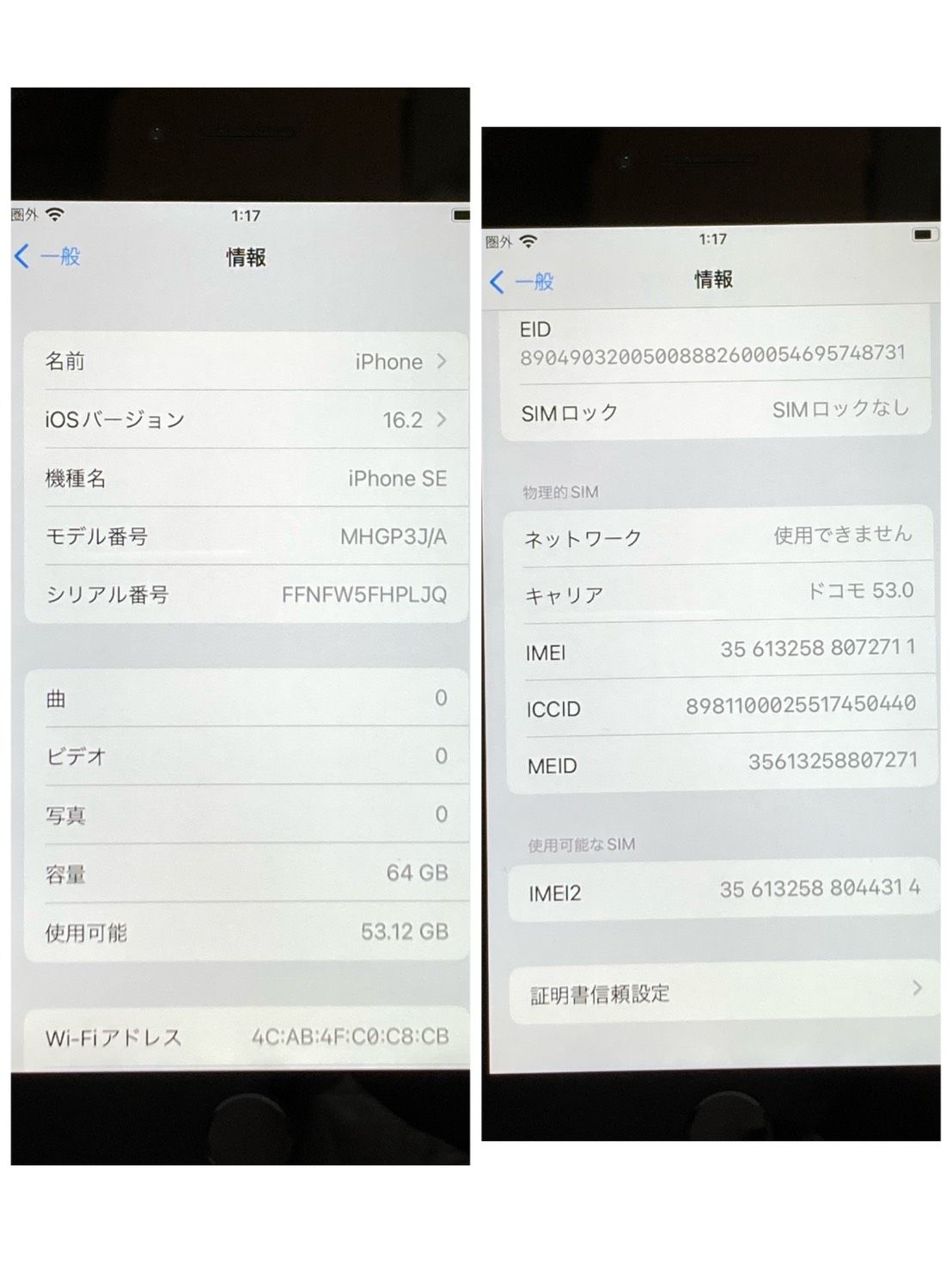 | IMEI番号 | 356132588072711 |