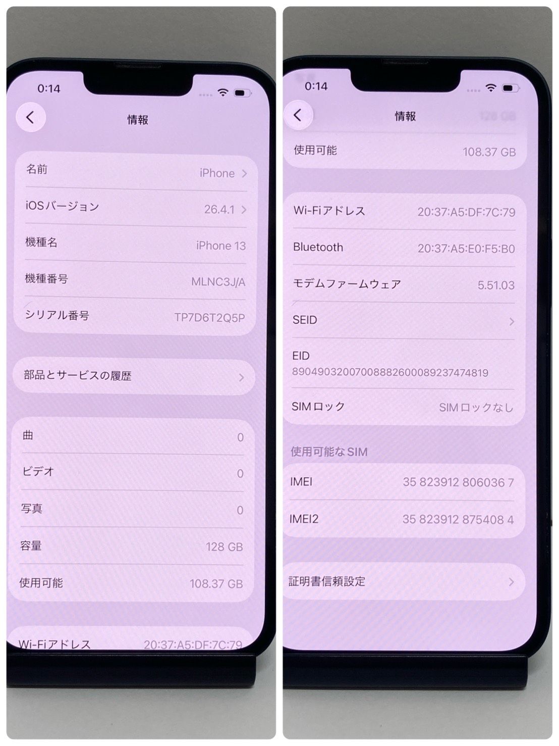 | IMEI番号 | 358239128060367 |