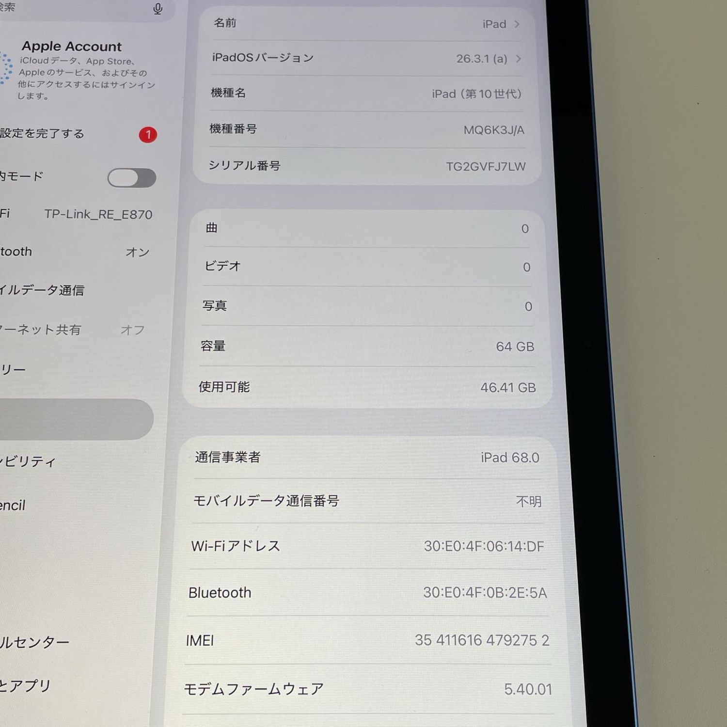 | 機種名 | iPad(第10世代) |