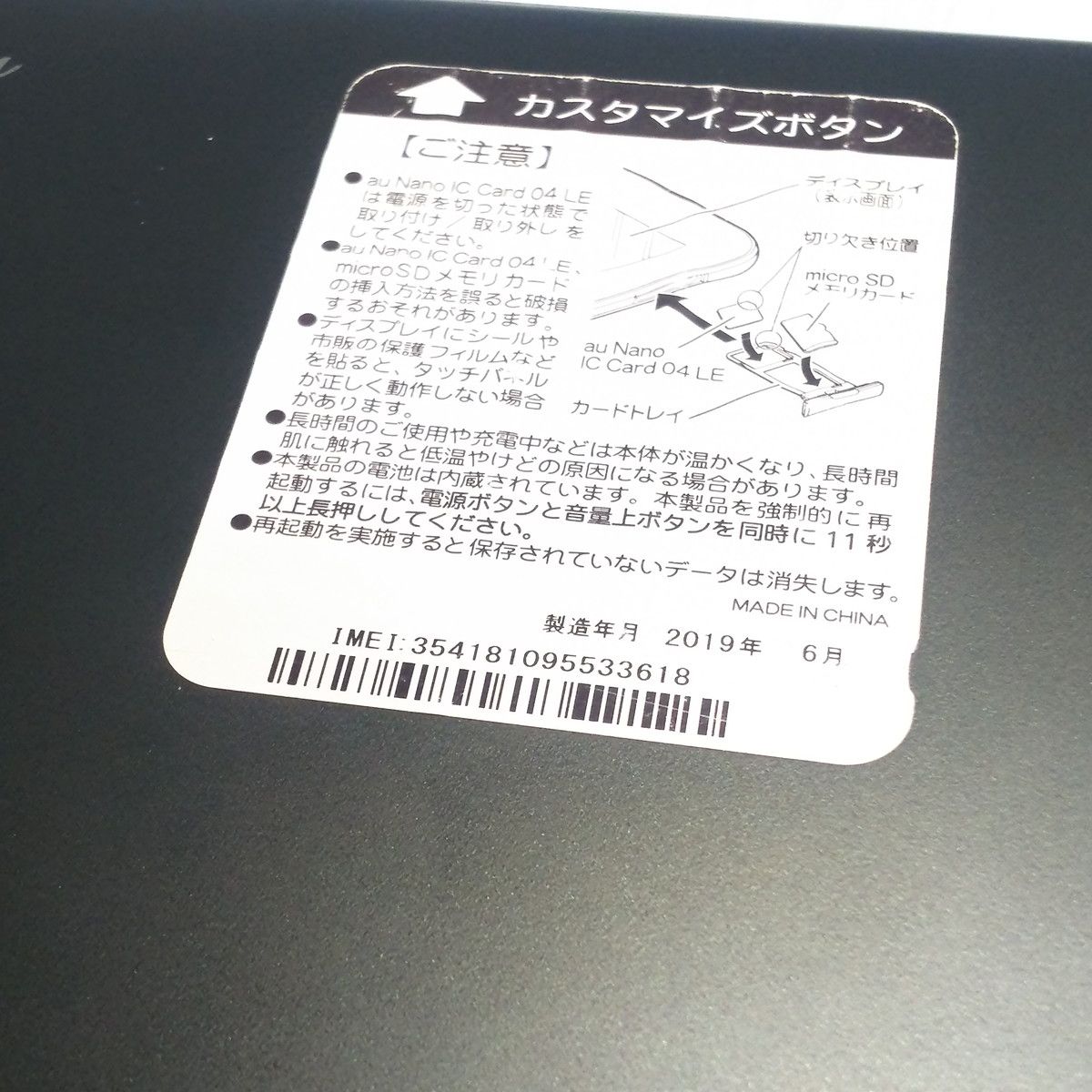 | IMEI番号 | 354181095533618 |