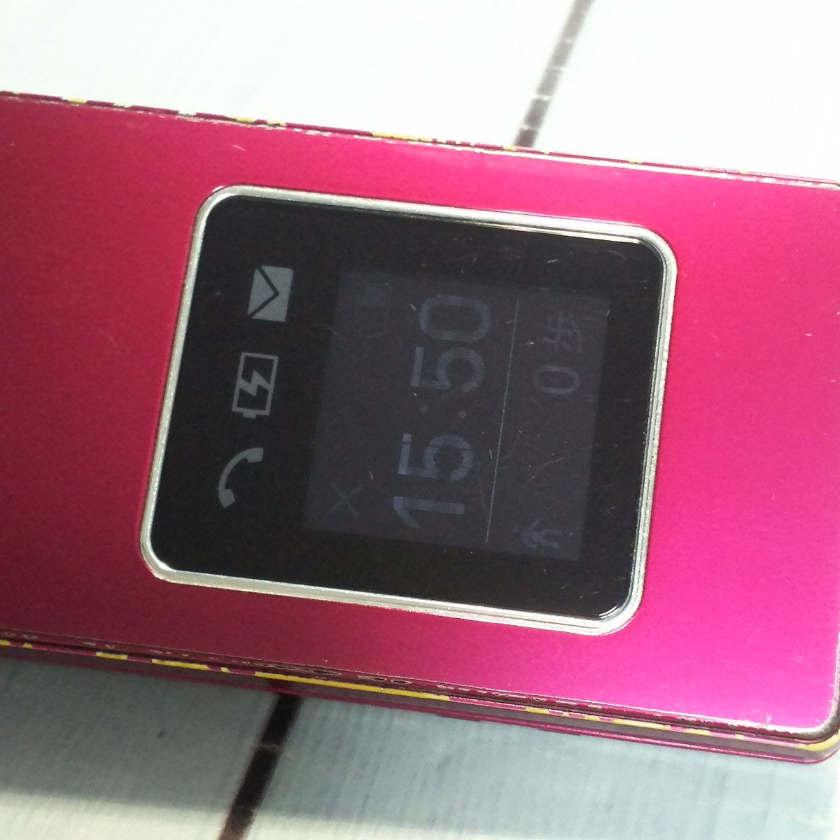 また、サブディスプレイが暗く、複数の擦り傷と縦線が見られます。