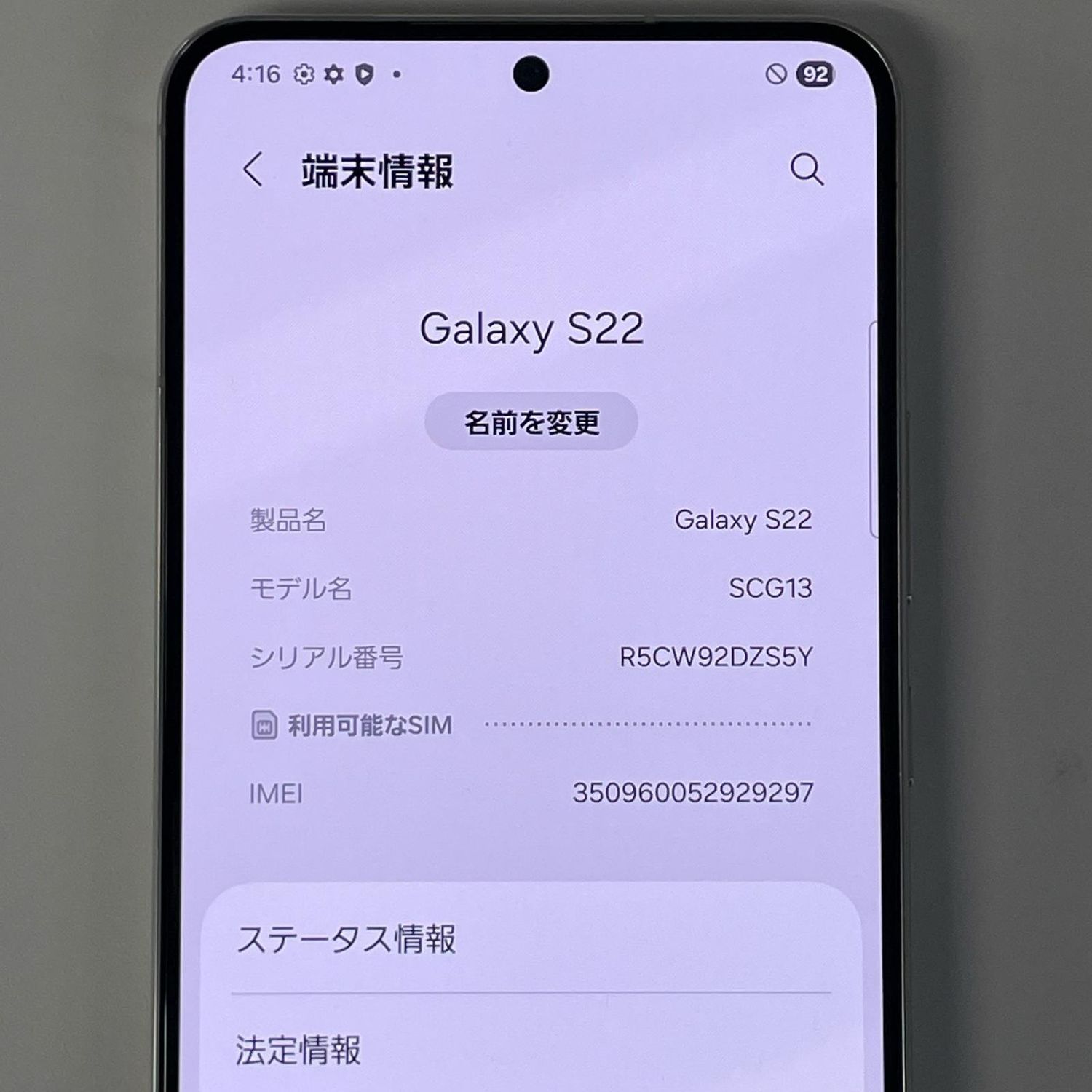 | 機種名 | Galaxy S22 SCG13 |