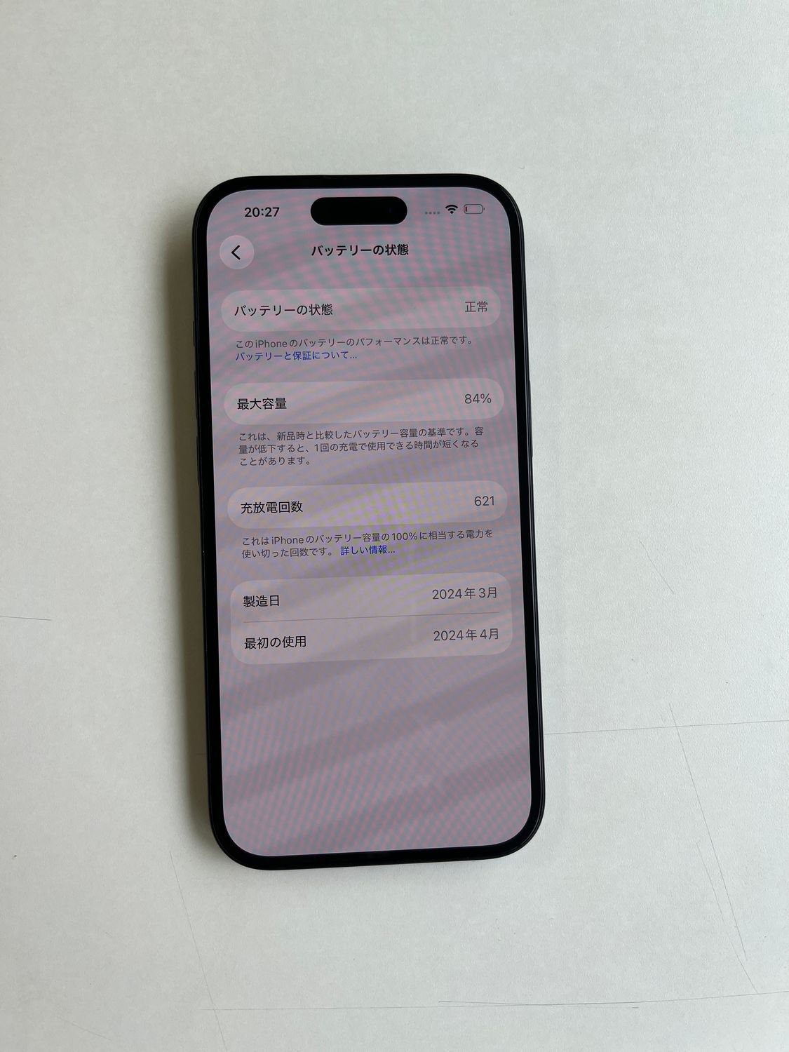 バッテリー最大容量: 84%