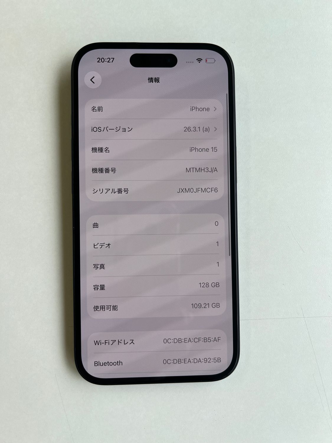 | 機種名 | iPhone15 |