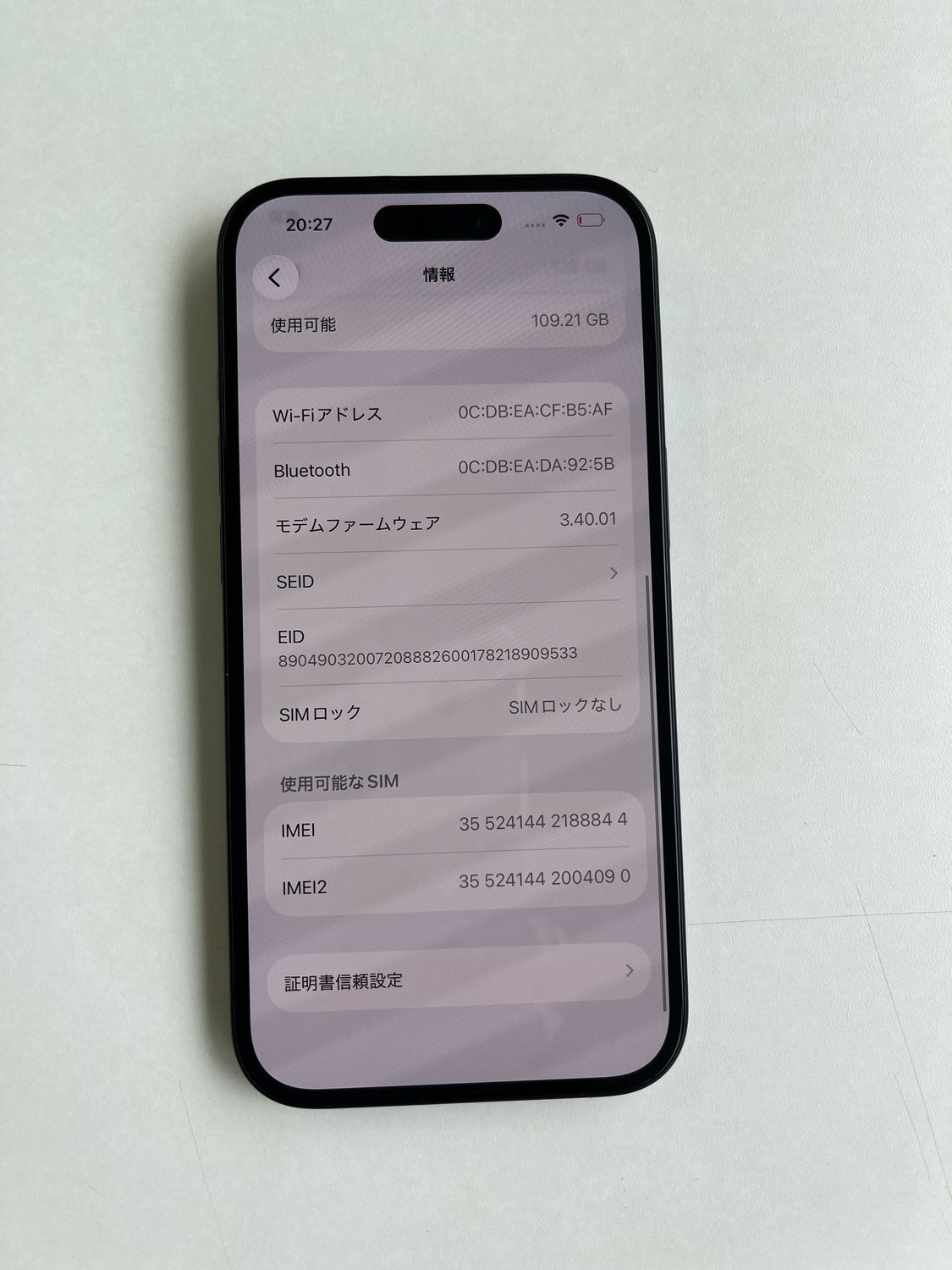| IMEI番号 | 355241442188844 |