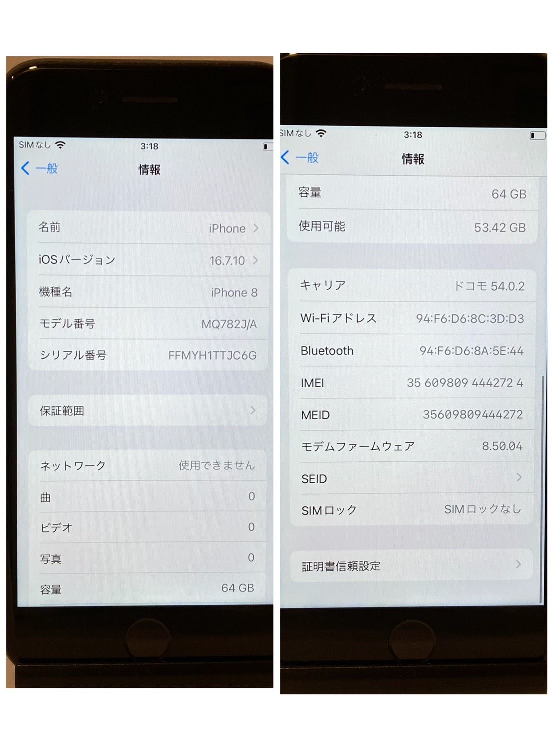 | 機種名 | iPhone8 |