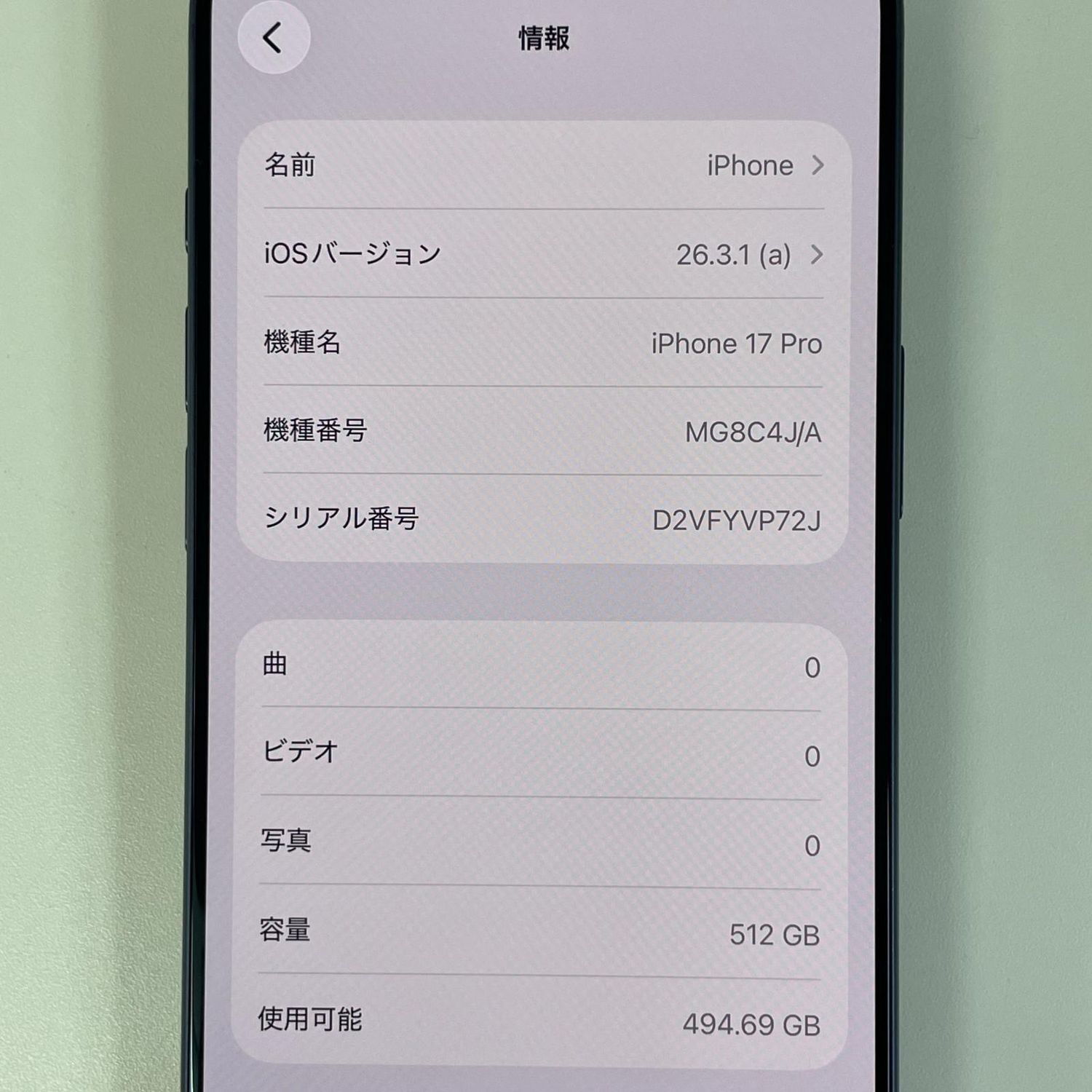 | 機種名 | iPhone17 Pro |