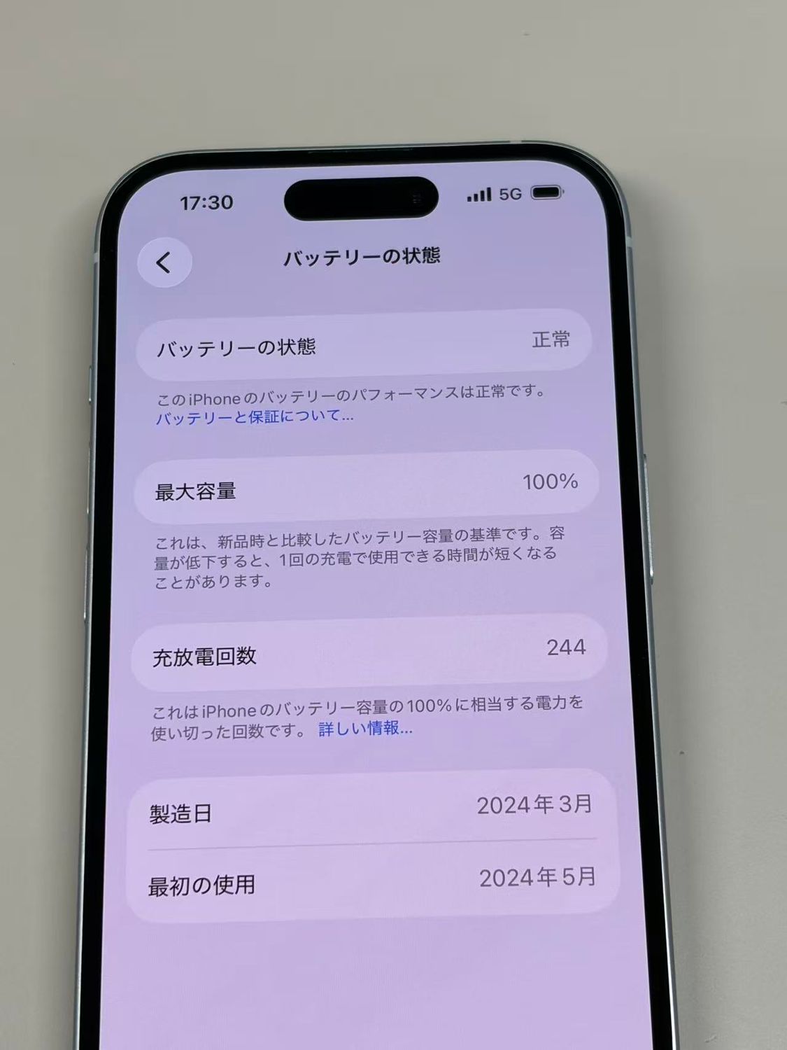 バッテリー最大容量表示:100%