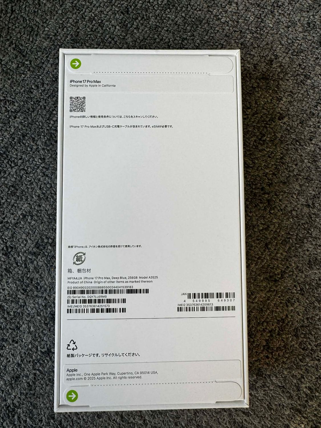 今日発送 新品・未開封 iPhone17 Pro Max 256GBディープブルー