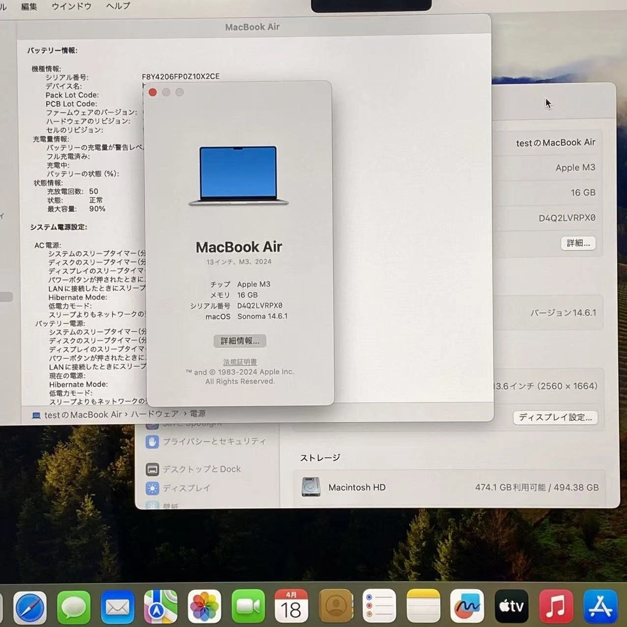 品名 Macbook air 13インチ Early2024 Apple M3 16GB/512GB シルバー MXCT3J/A 美品