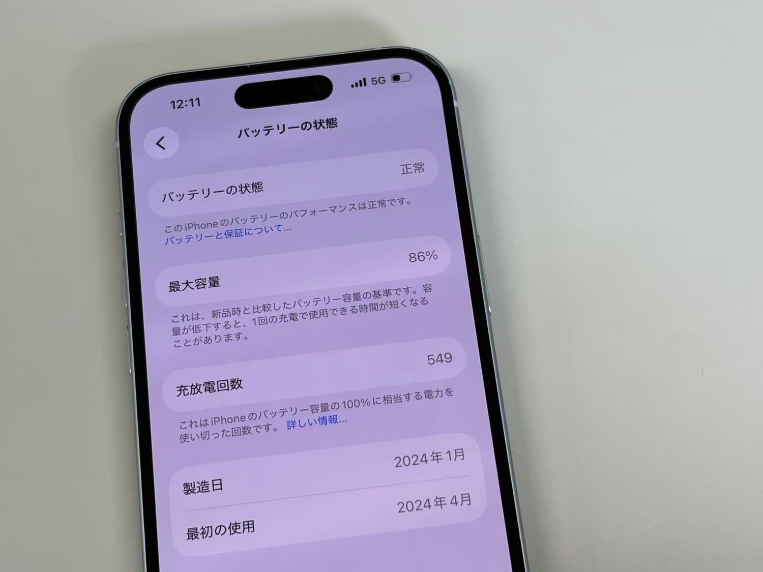 バッテリー最大容量表示:86%