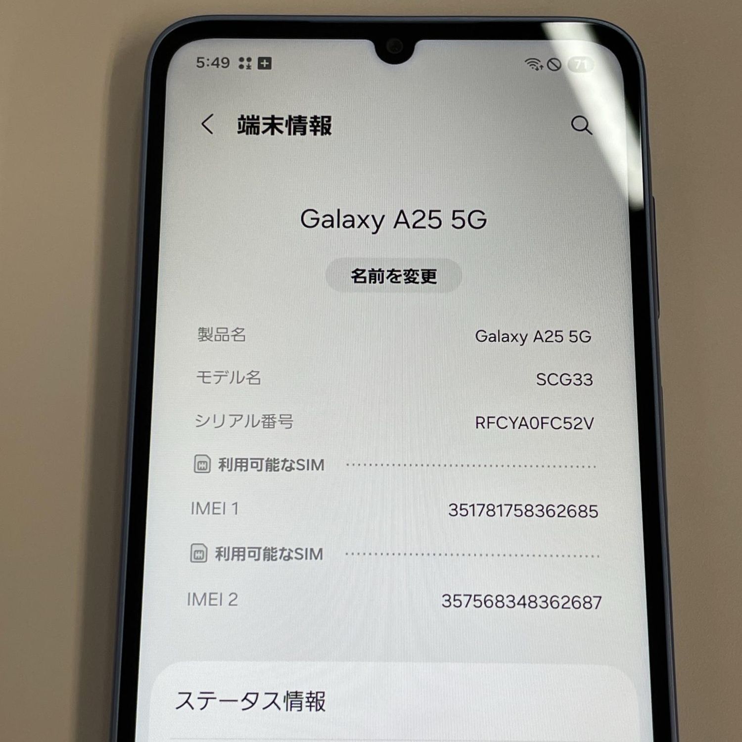 | 機種名 | Galaxy A25 5G |