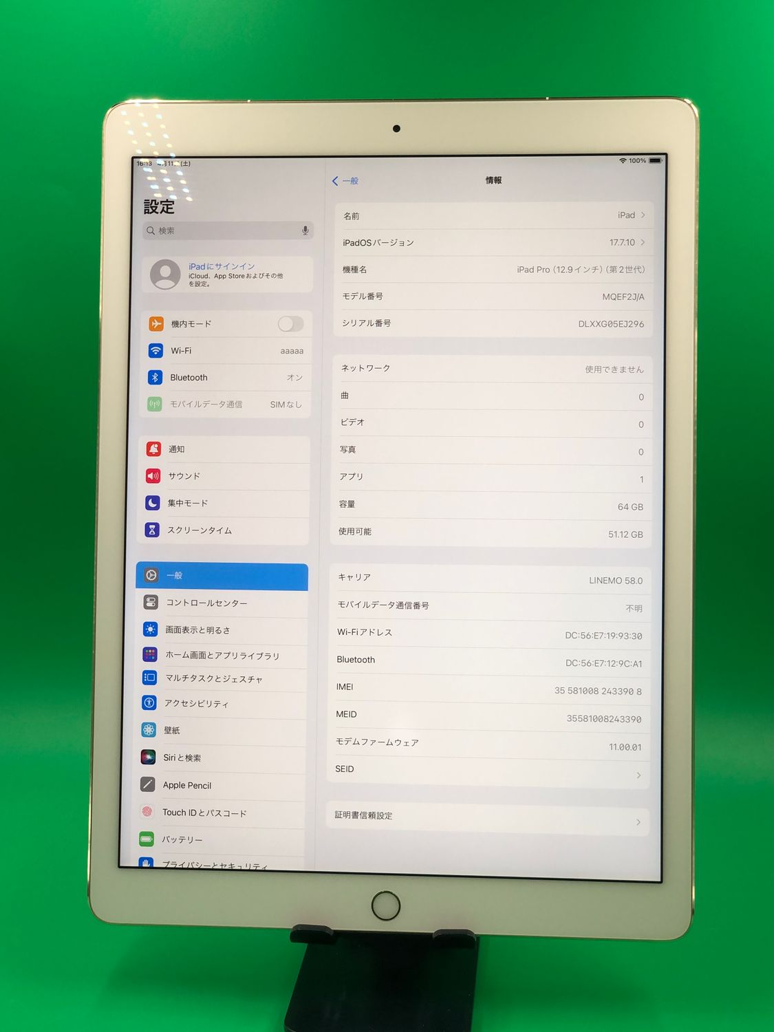 | 機種名 | iPad Pro 12.9インチ(第2世代) |