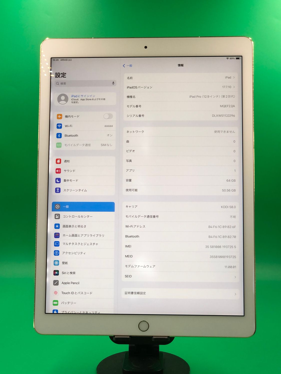 | 機種名 | iPad Pro 12.9インチ(第2世代) |