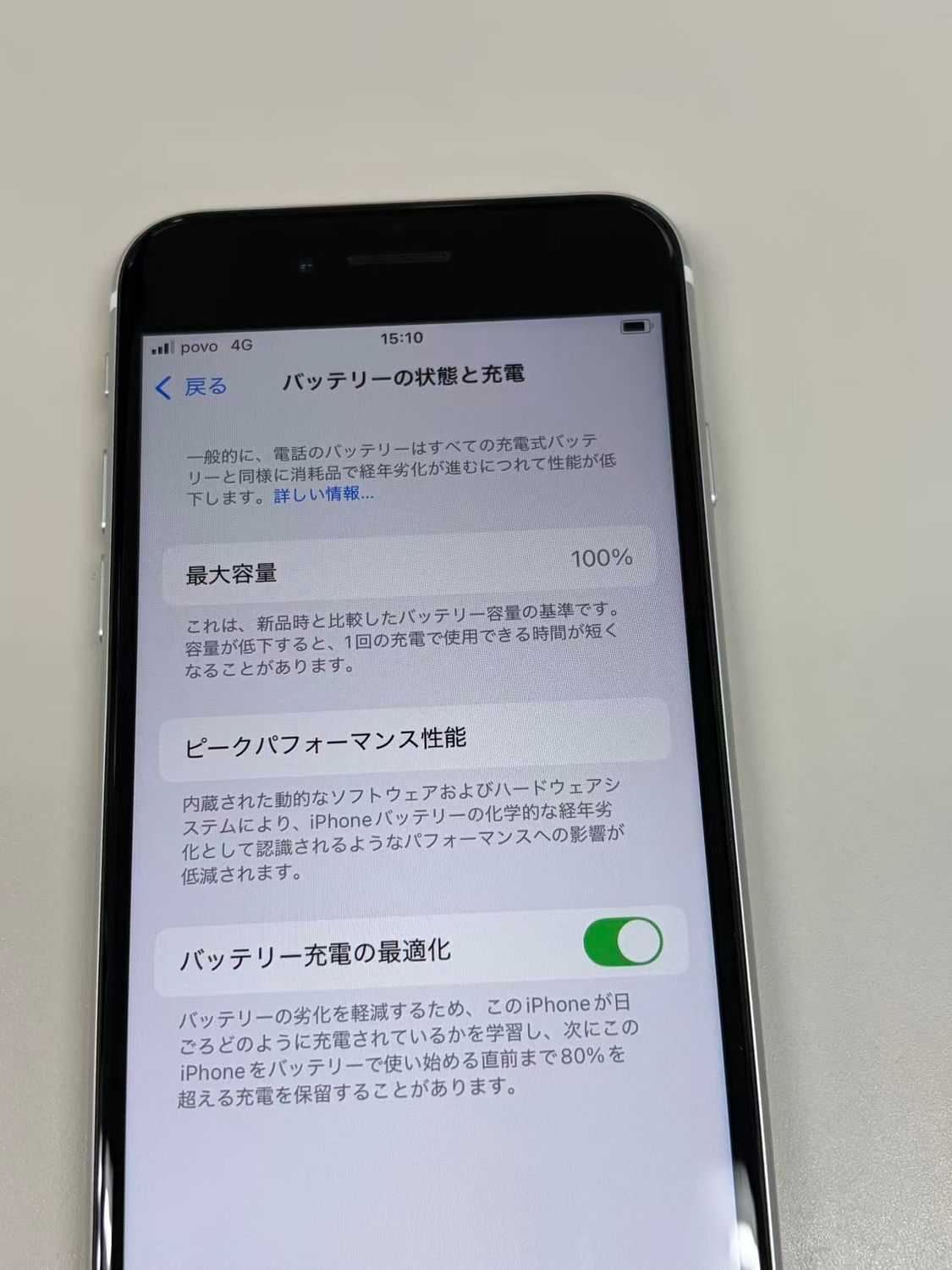 バッテリー最大容量表示:100%(充放電回数:1回)